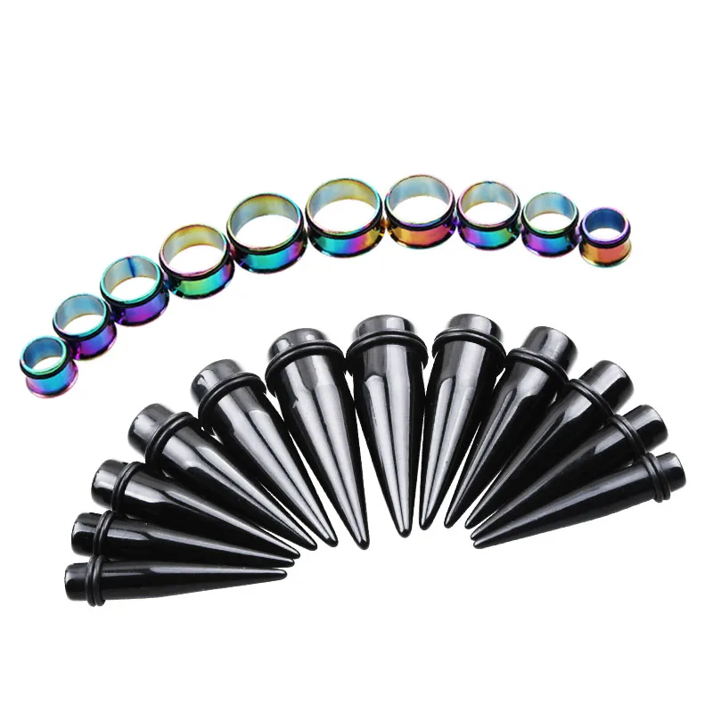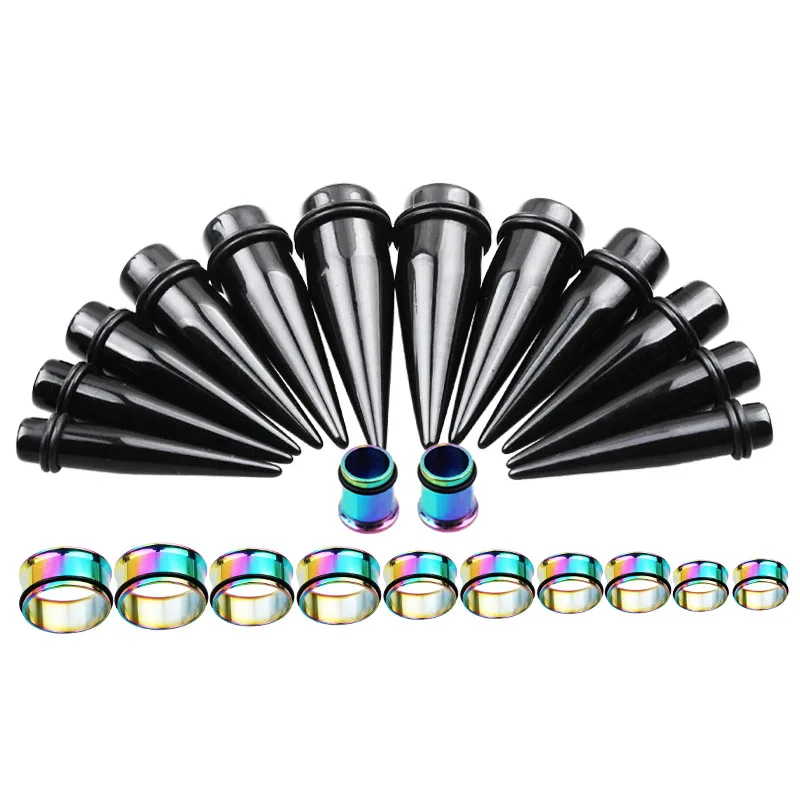 10-20mm 24pcs/lot Steel Acrylic Ear Gauge Tapers And Plugs Stretching Kits Flesh Tunnel Expansion Body Piercing Jewelry Unisex