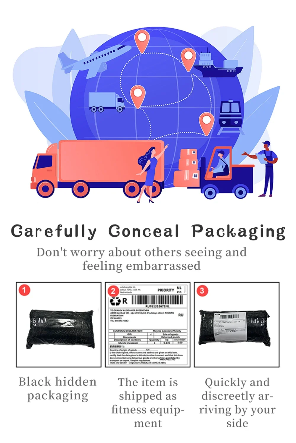 Confidential description: Your privacy we take a great care and is very important for us. We would describe it as 'Toys' or “Fitness Equipment” other regular thing without sexual mention on the parcel.