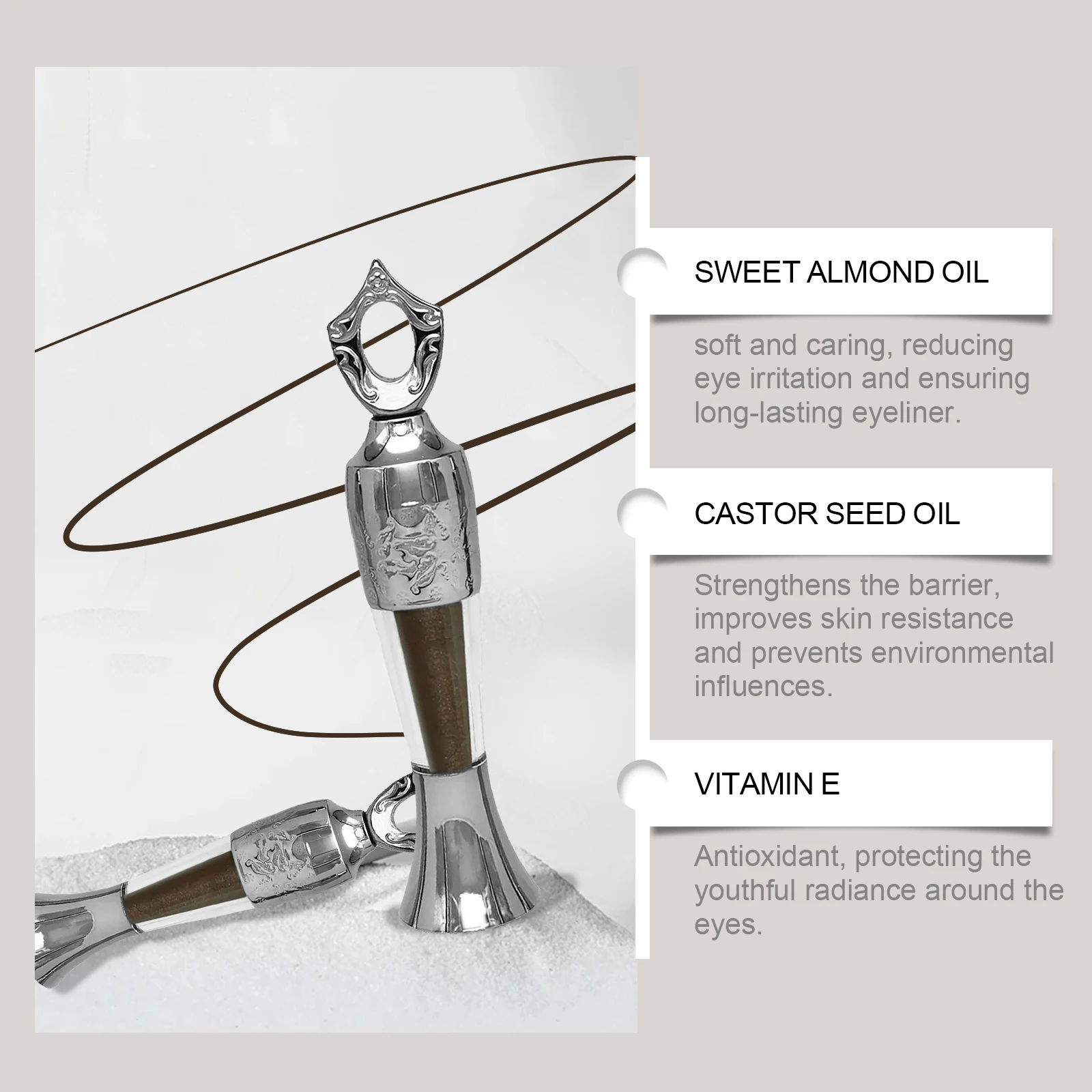 1. It can be soft and caress, reduce eye irritation and ensure long-lasting eyeliner. Strengthen the barrier, improve skin resistance, and protect against environmental influences.