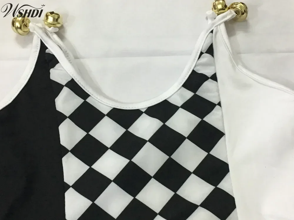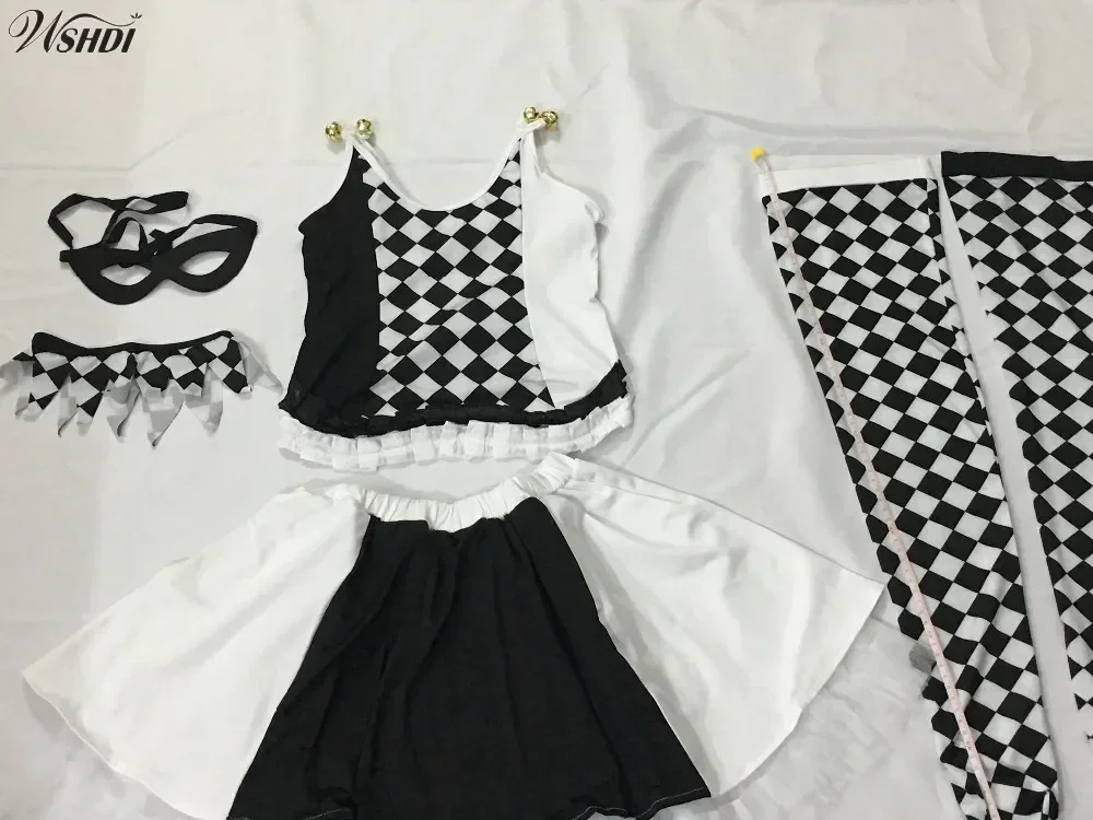Cosplay adulte cirque Clown noir blanc treillis ensemble de costumes femmes Halloween carnaval déguisement mascarade fête