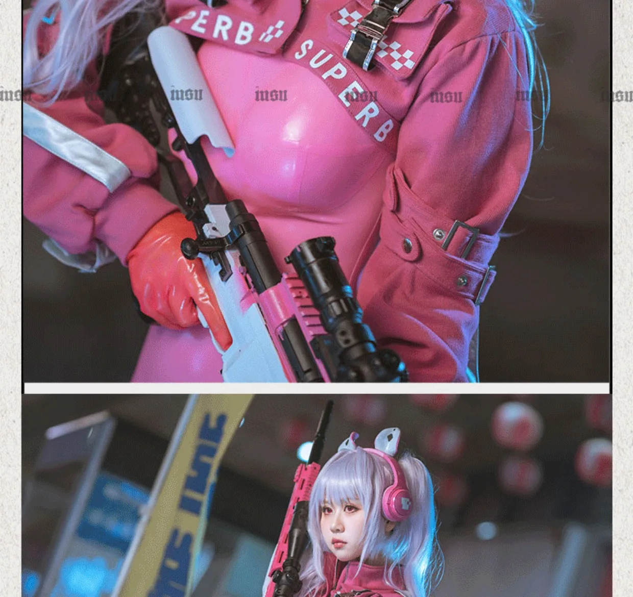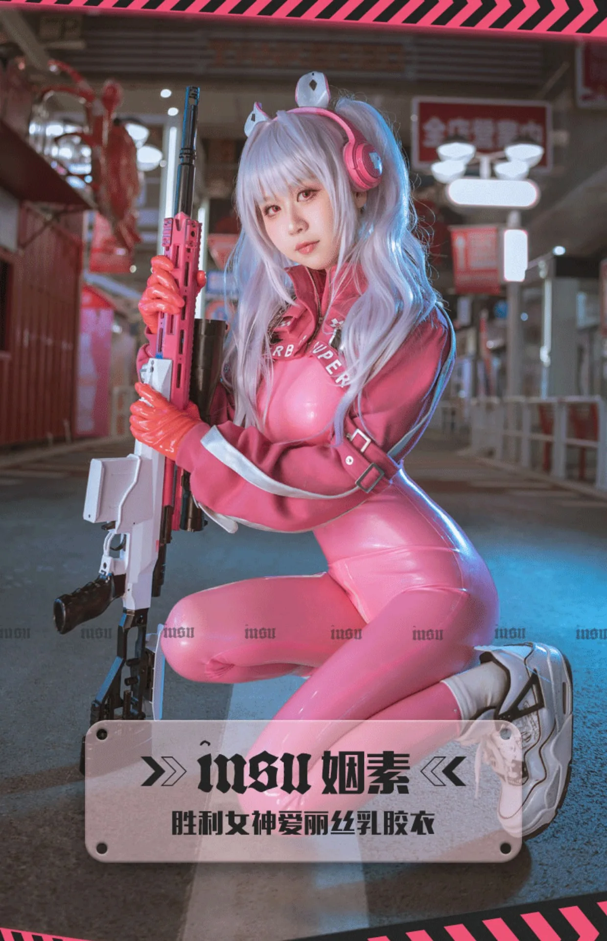 Name: Game Role Alice Cosplay Pink Latex Tights Jumpsuit