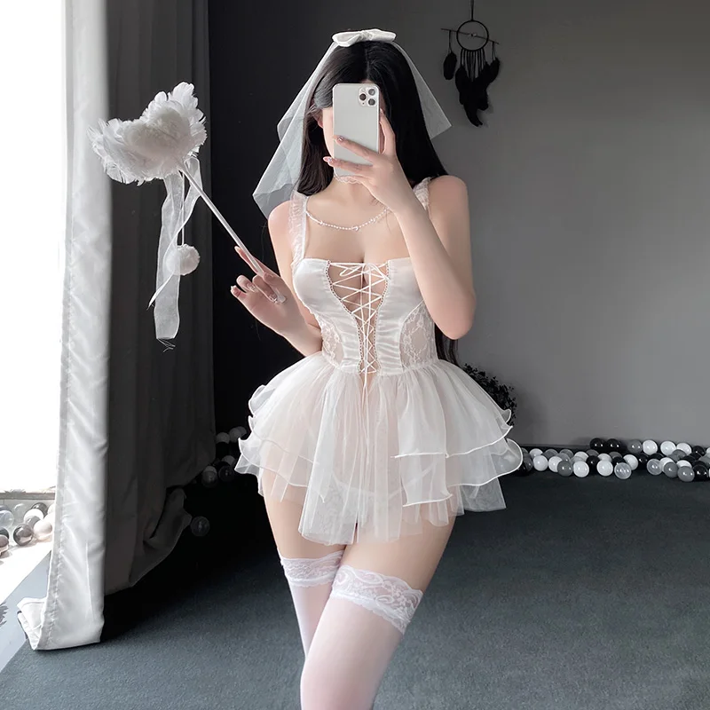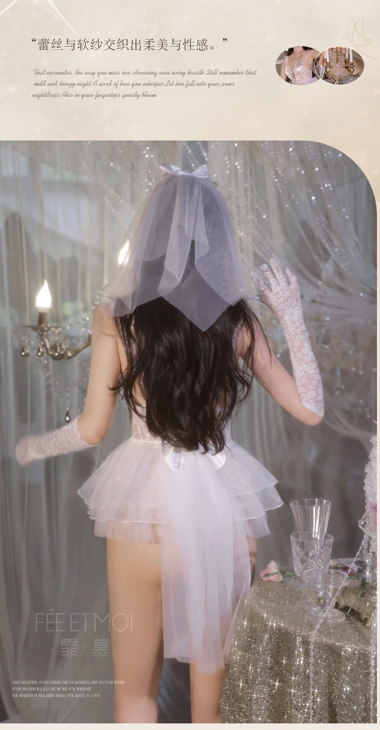 jimiko Costume Women Cosplay Bridal Wedding Lingerie Set Wedding Night Sexy Lingerie Erotic Playwear Tulle Lingerie Playwear Set