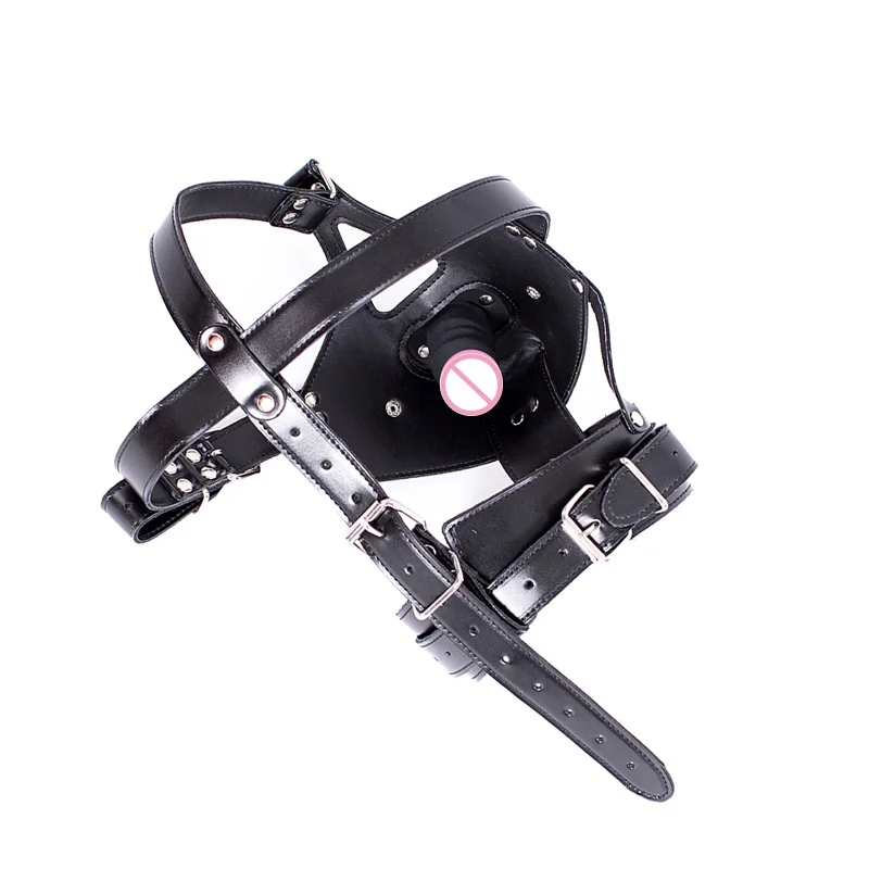 Leather fetish headwear, mask, hood holder, dildo, mouth plug, BDSM, bondage, porn, adult cosplay, male, female and gay sex toys