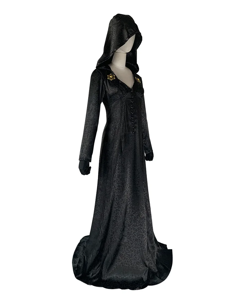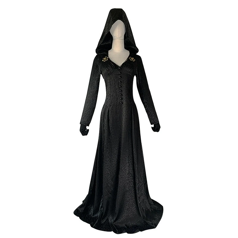 Medieval costume Daughter of Lady Dimitrescu Cosplay Costume Gothic Long Dress with Hood Vampire Bella Cassandra Halloween Dress