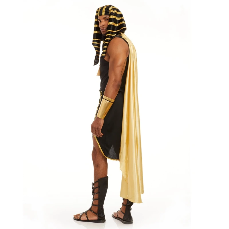 Men Egyptian Costume Set 7 Pcs Golden Trim Tank Tops Skirt Arm Sleeves Headwear Necklace Halloween Cosplay Outfits