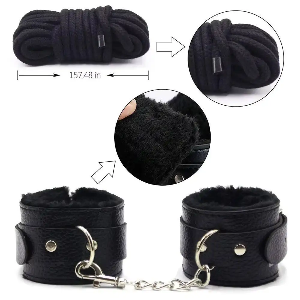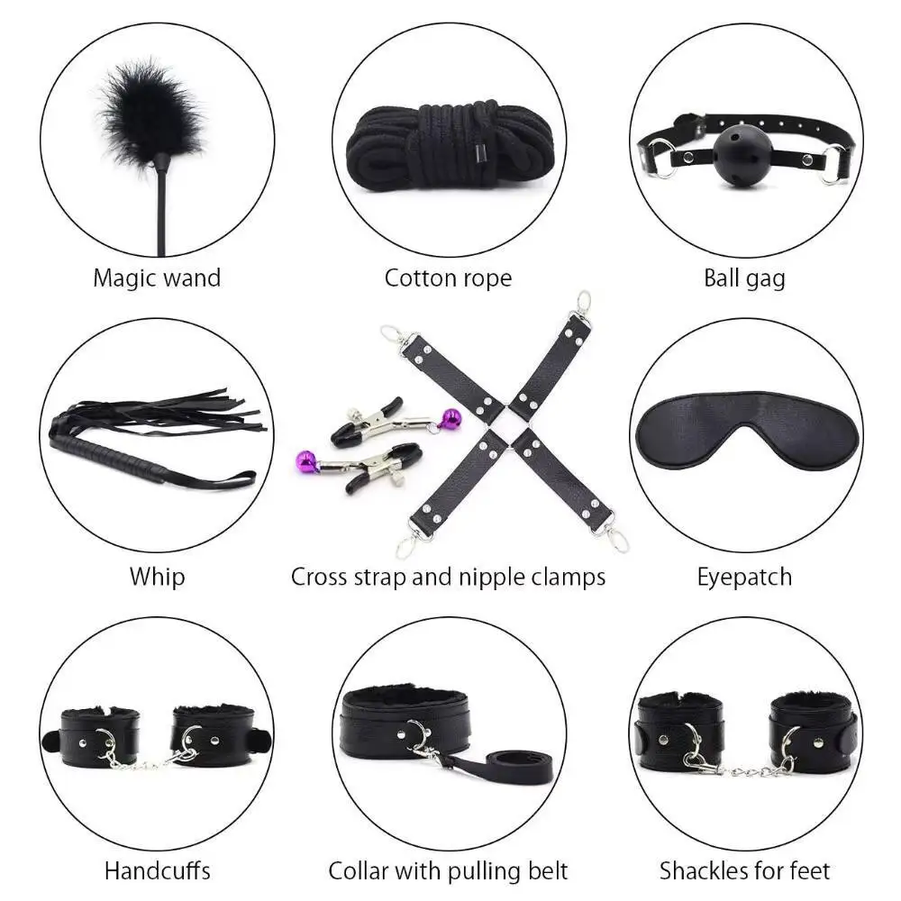 Black 10 Pcs Under Bed Bondage Kit Restraints Love Cuff Bracelets Set For Couples Toys Bondage Suit