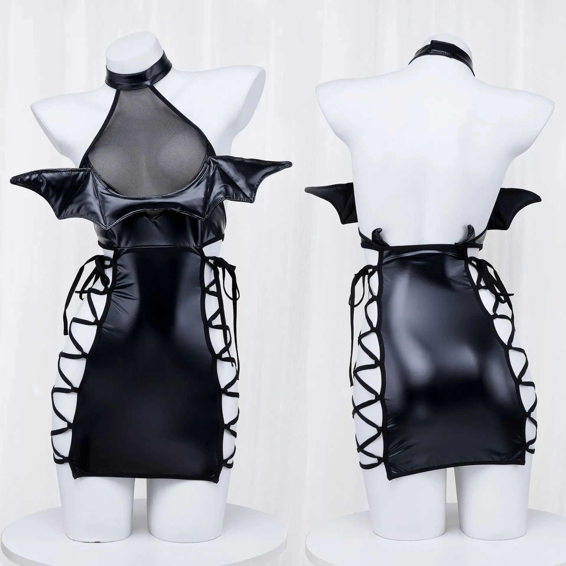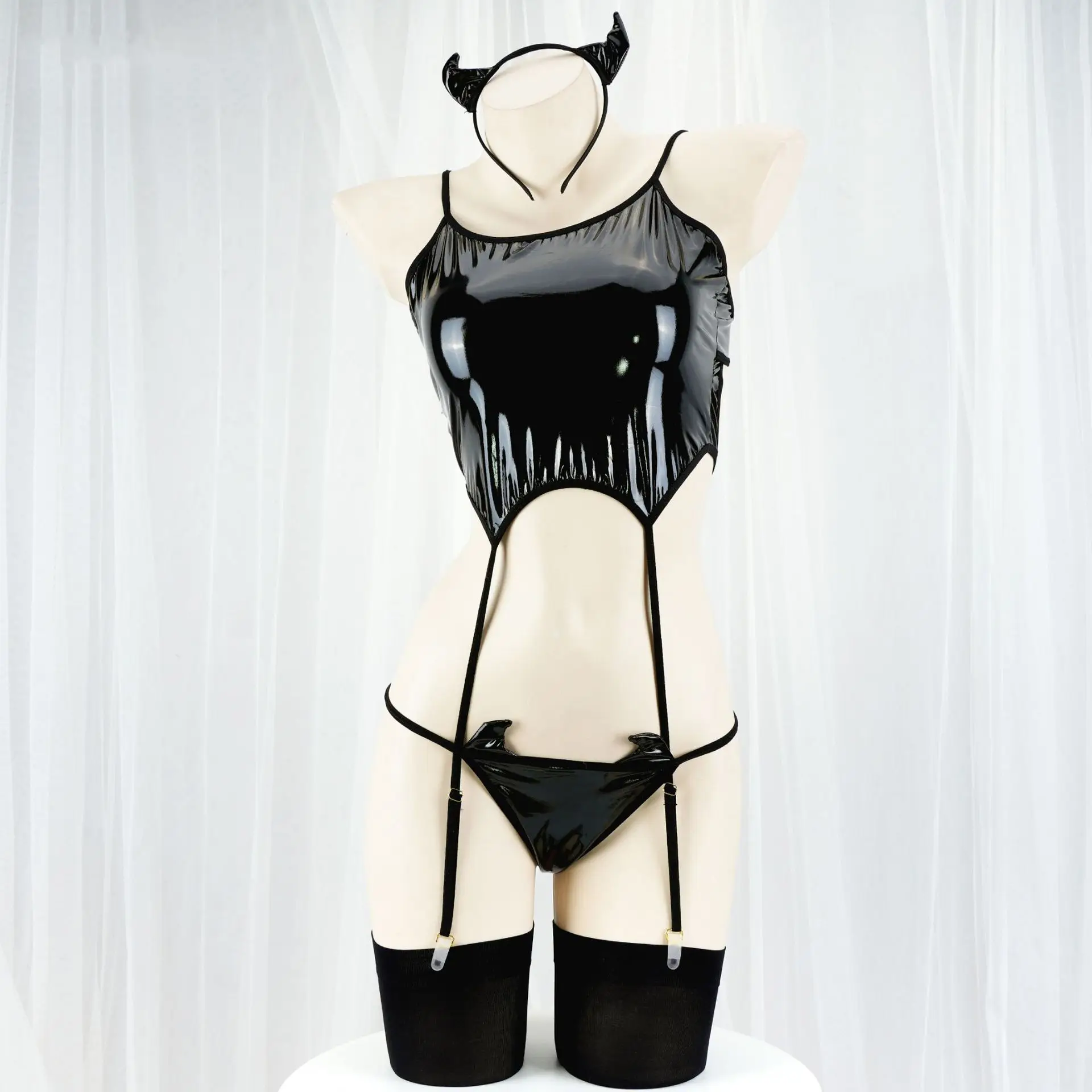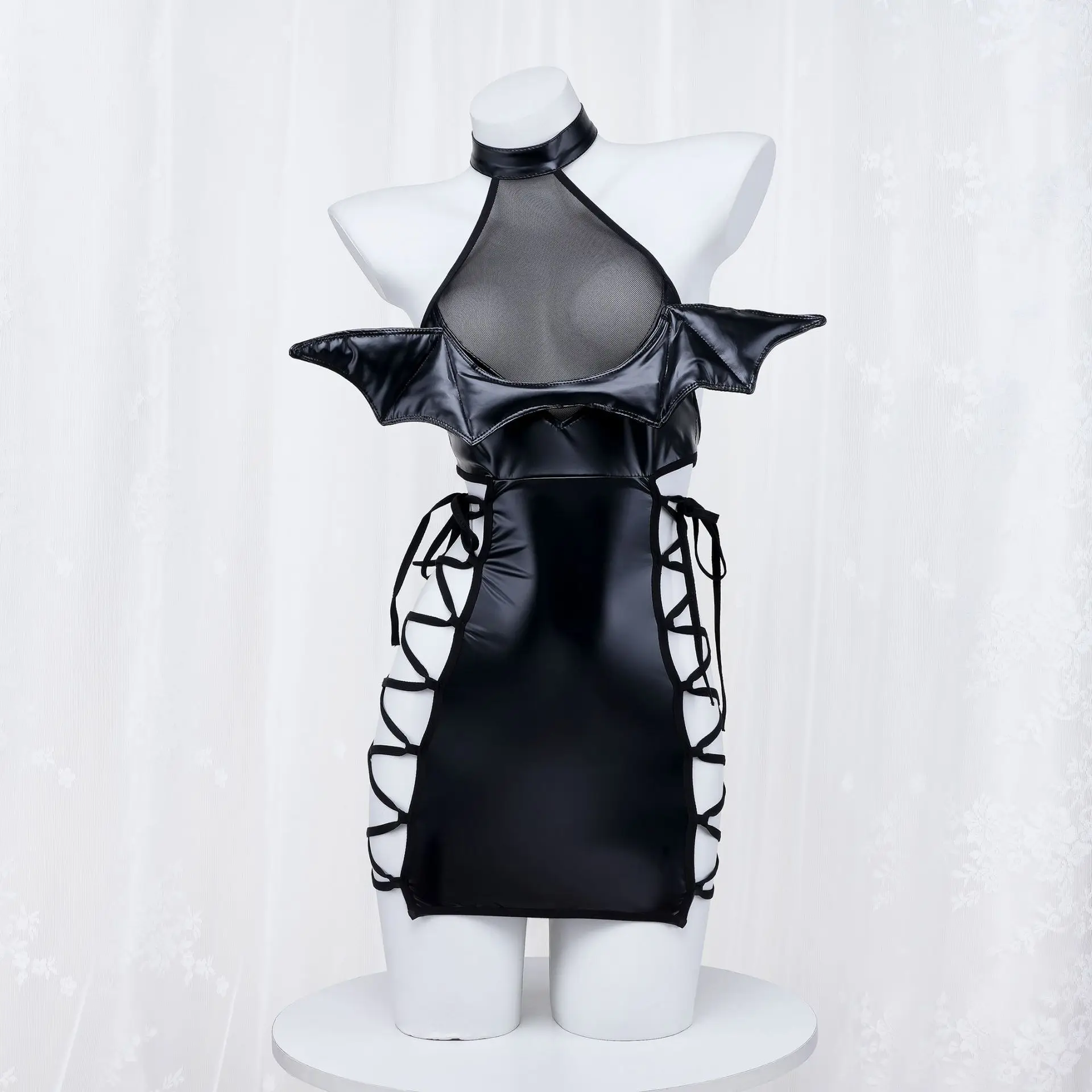Sexy Amine Demon Cosplay Costume Set Hollow Dark Underwear Succubus Lingerie Role Play Outfits Halloween Faux Leather For Women