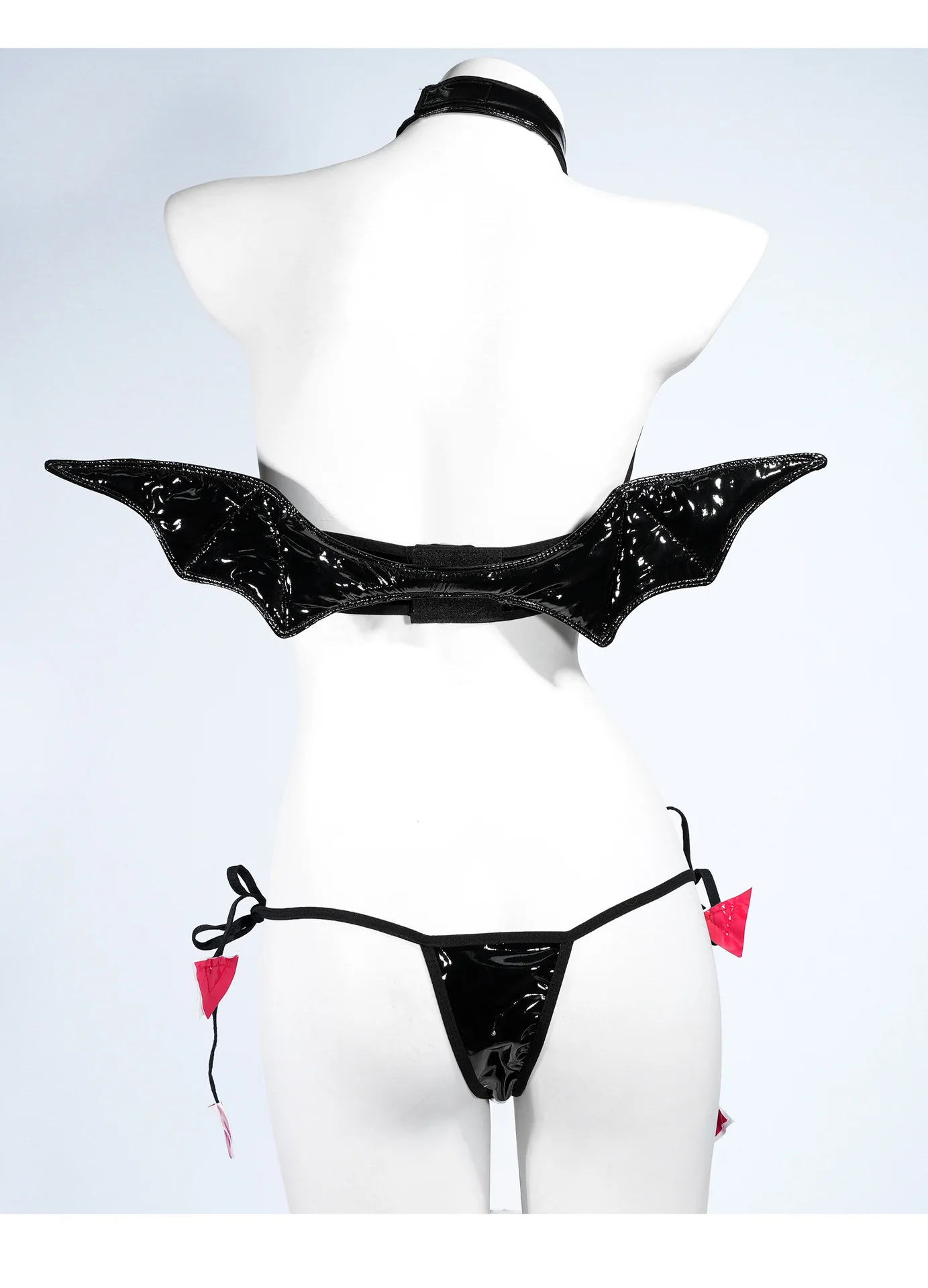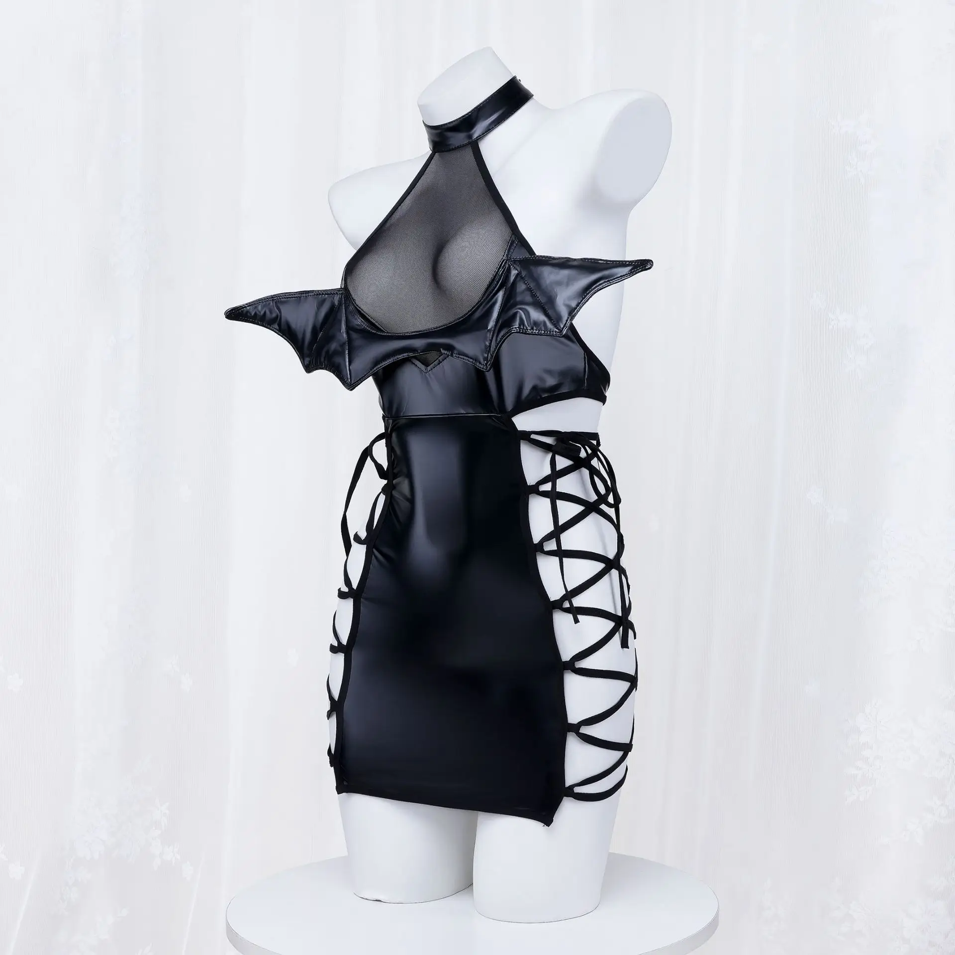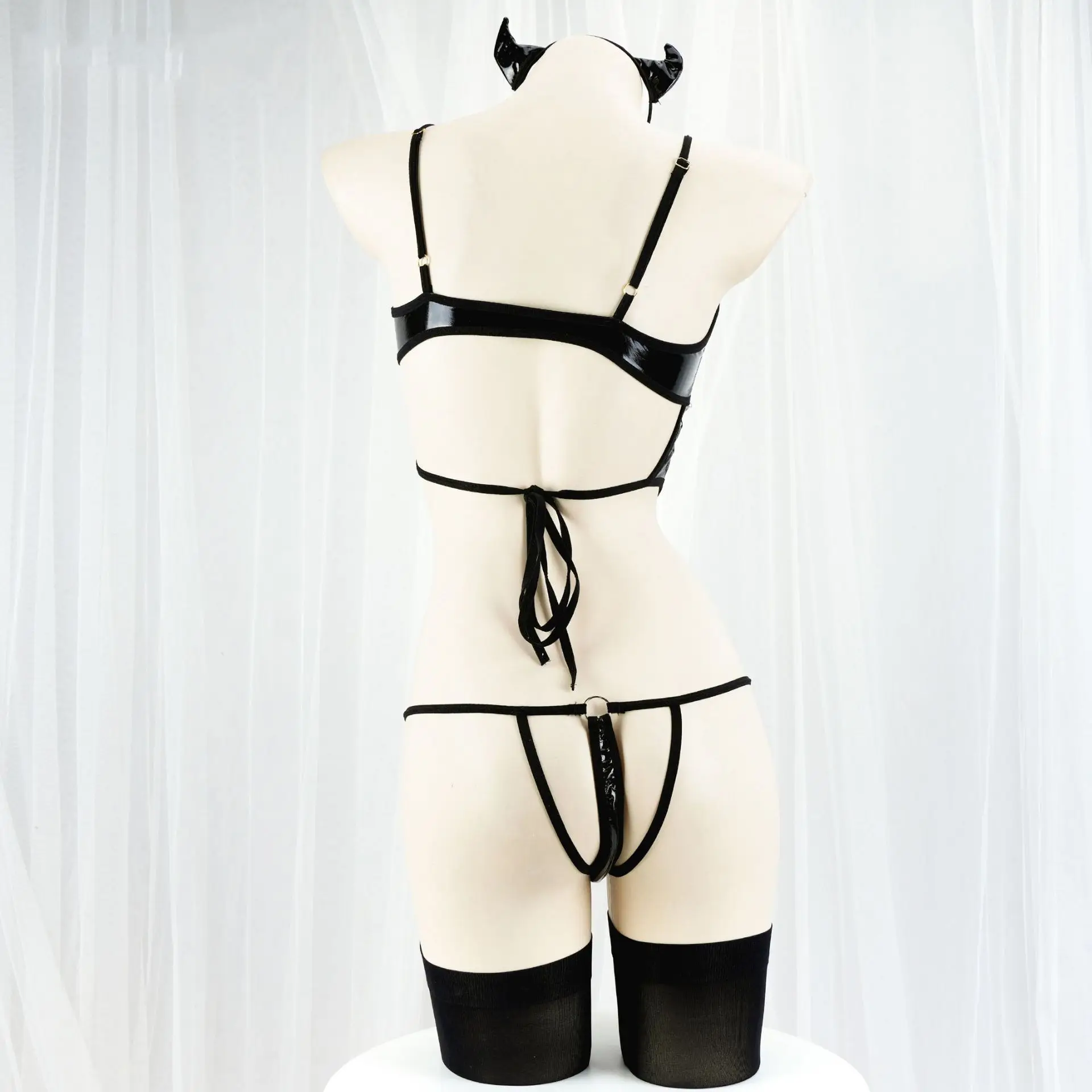 Sexy Amine Demon Cosplay Costume Set Hollow Dark Underwear Succubus Lingerie Role Play Outfits Halloween Faux Leather For Women
