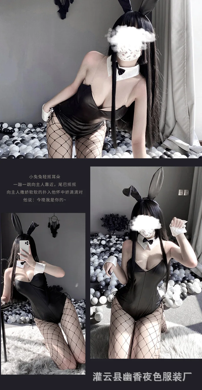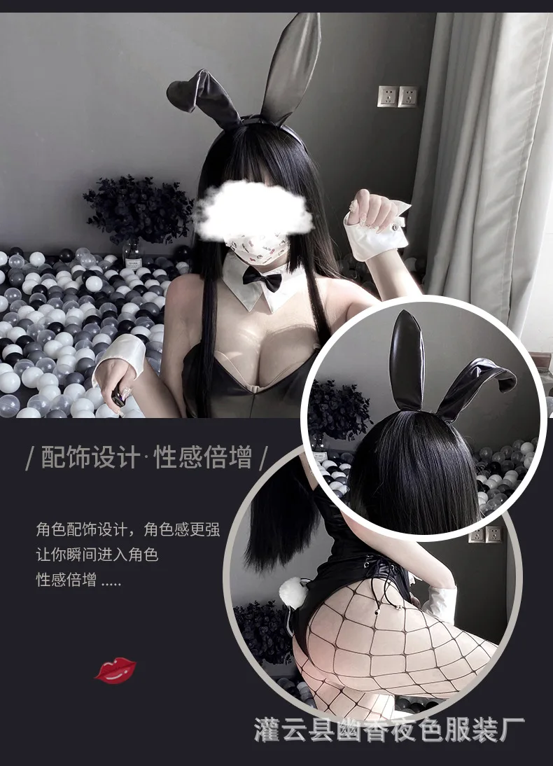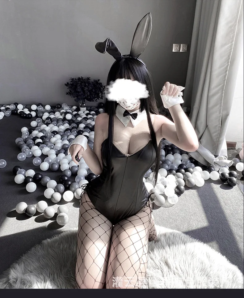 Sexy Bunny Cosplay Costume Women Men Sexy Bodysuit Lingerie Kawaii Bunny Girl PU Faux Leather Rabbit Suit Anime Outfit Halloween