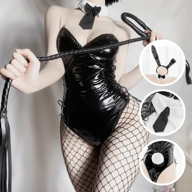 Sexy Bunny Girl Cosplay Bodysuit Sakurajima Mai Senpai Costume Jumpsuit Faux Leather Woman Lingerie Rabbit Costumes