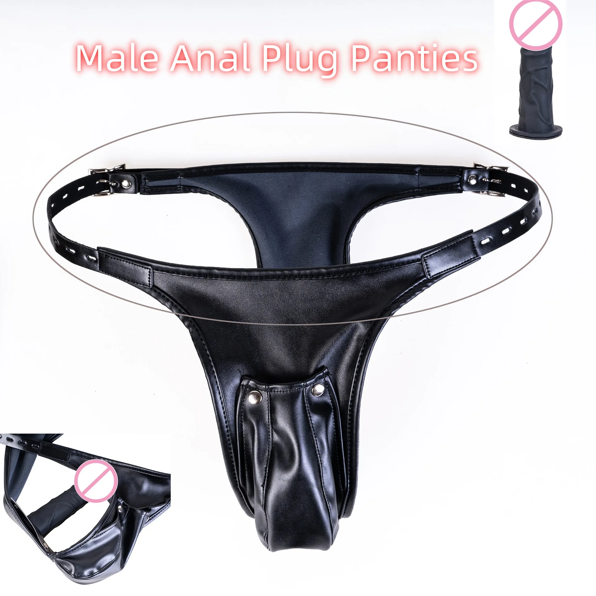 Ultra Men Sexy Leather Bondage Gear Sex Toys Kits of Male Silicone Anal Plug Harness Panties Erotic Costumes Exotic Accessories