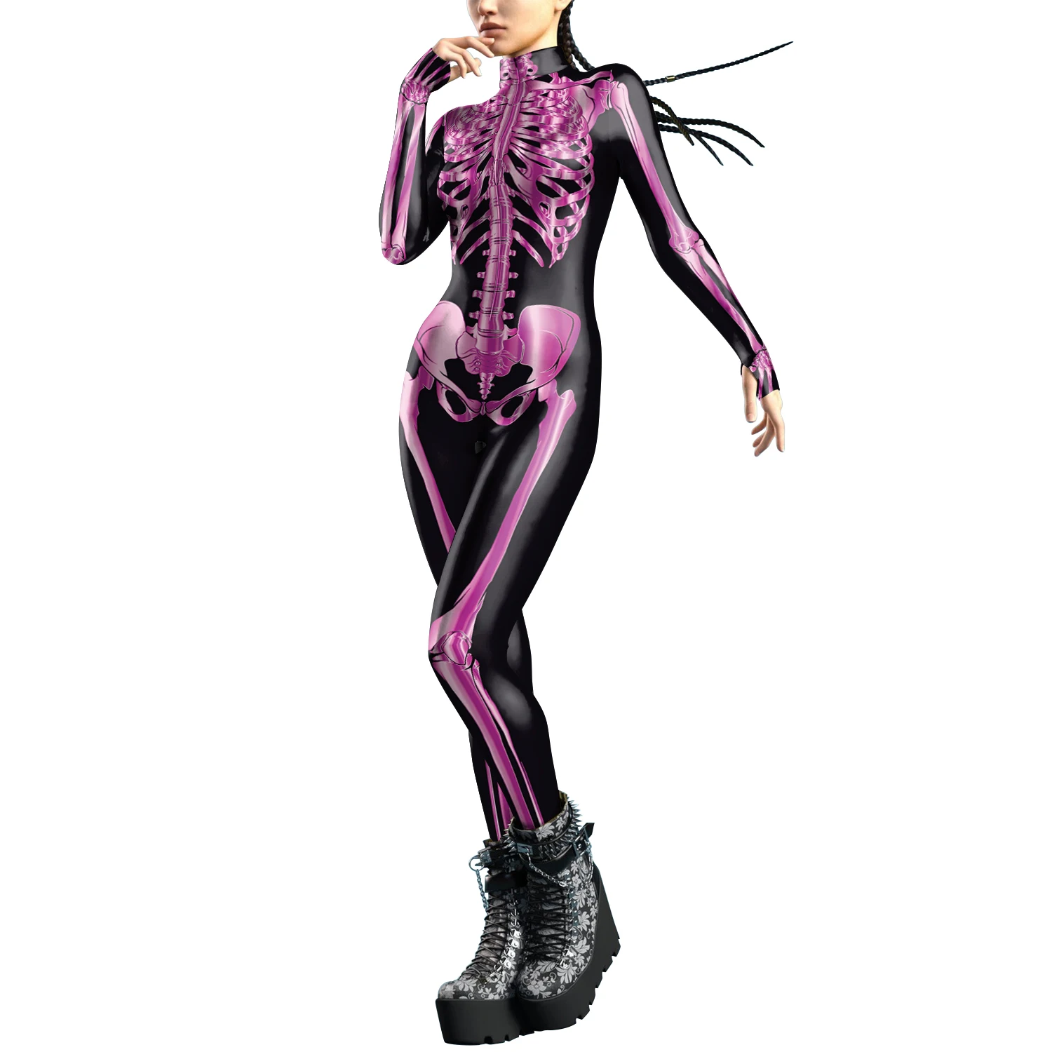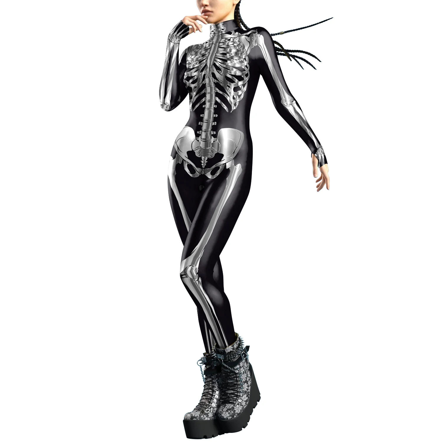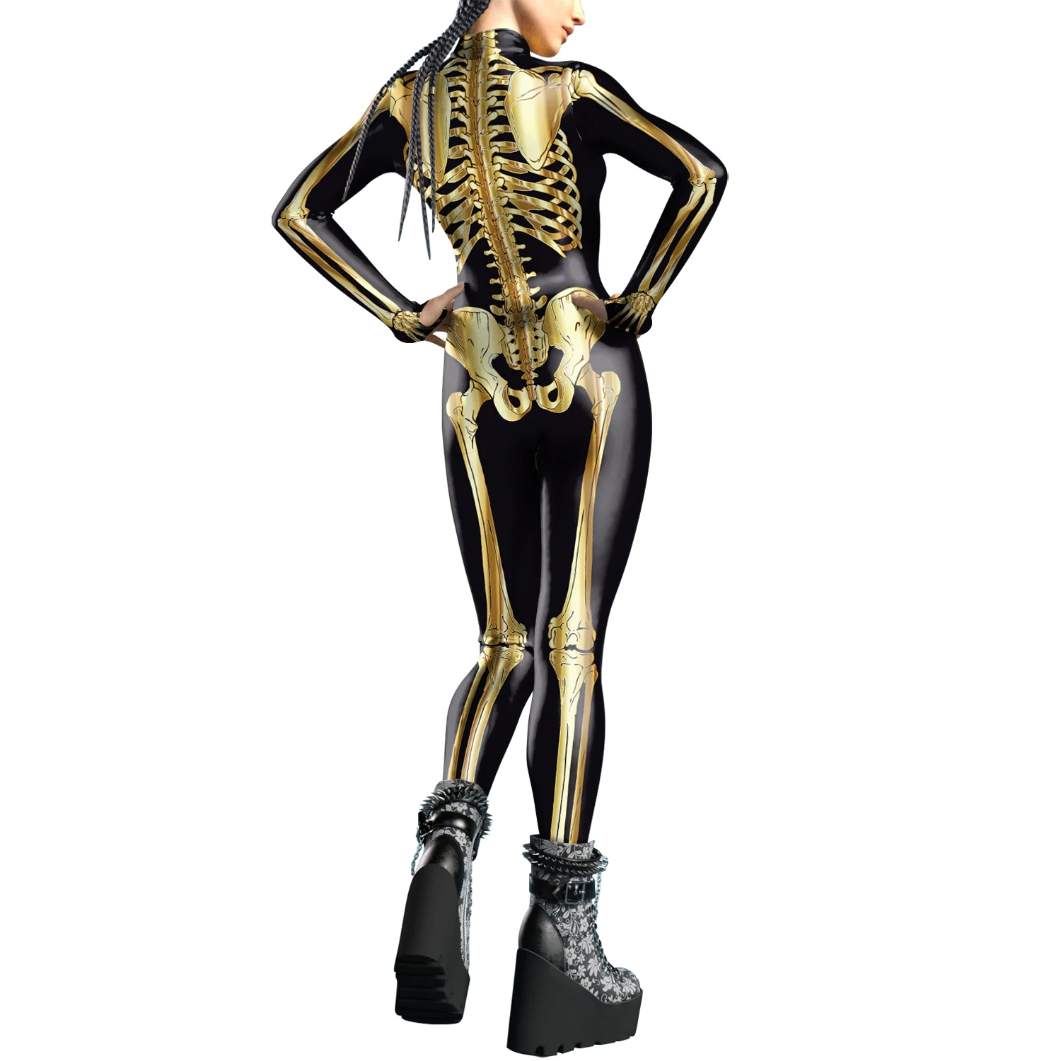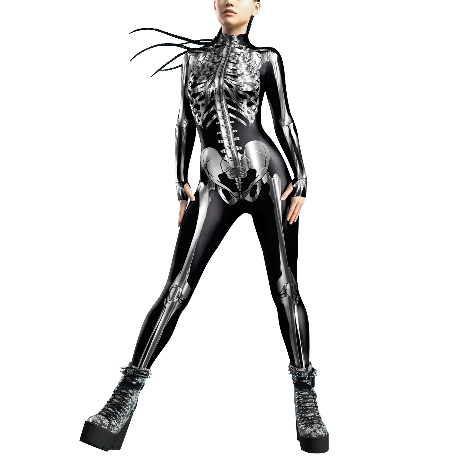 [You're My Secret]Halloween Cosplay Costumes For Women Skeleton Printed Long Sleeve Bodysuits Slim Elastic Fancy Outfits Catsuit